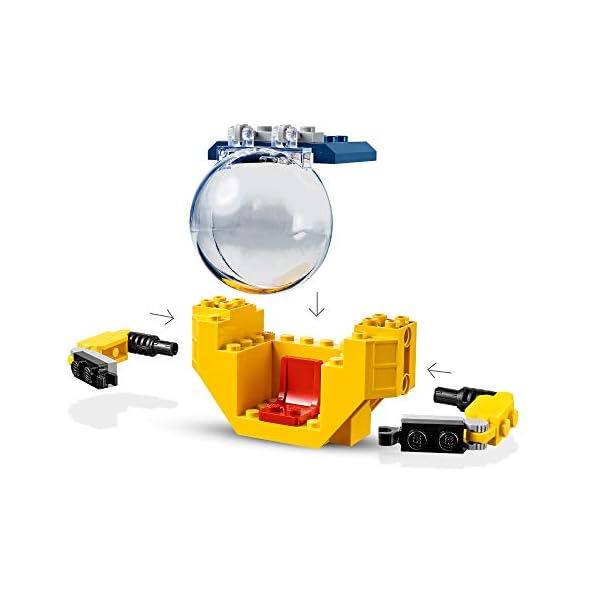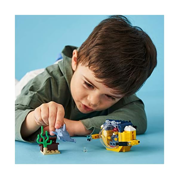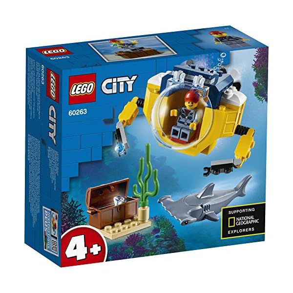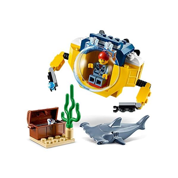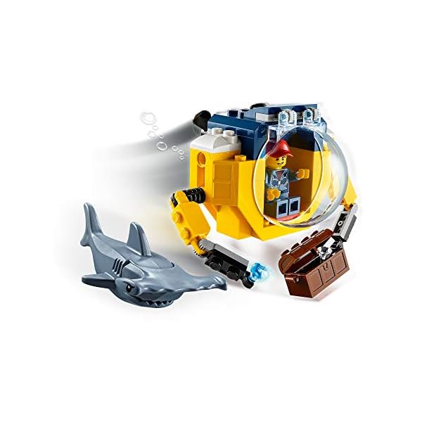 I bambini possono immergersi nel gioco creativo con questo playset del Minisottomarino oceanico LEGO City (60263). Ci sono un sottomarino giocattolo con cabina di pilotaggio a bolla e bracci d’ispezione, un forziere pirata con gemme e uno squalo martello. Questo kit di costruzione ha tutto quello di cui i bambini hanno bisogno per avventure subacquee.