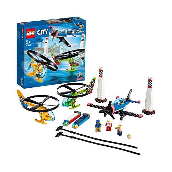 Fai decollare l’immaginazione dei bambini con il playset Sfida aerea LEGO City (60260), contenente un aereo acrobatico a elica, 2 elicotteri dotati di lanciatore e 2 piloni. I bambini e le bambine possono divertirsi a lanciare gli elicotteri e partecipare ad avventure piene di azione con le 3 minifigure, tra cui Rivera, il pilota del programma TV di LEGO City, più i piloti di elicottero Xtreme e Vitarush.
