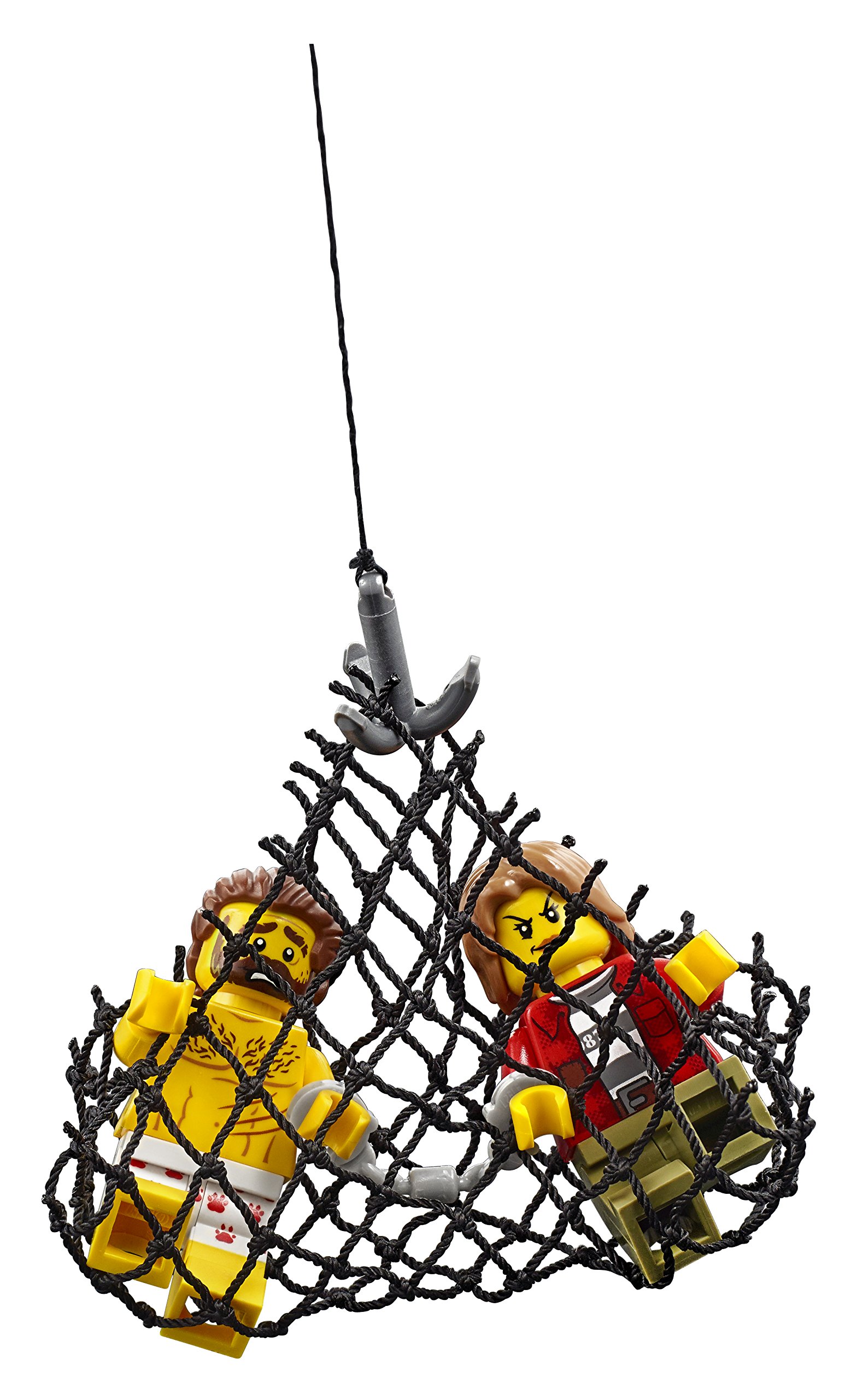 Elicottero di polizia con doppi rotori funzionanti, spara-reti e verricello con cavo e gancio, cabina di pilotaggio apribile e portello posteriore scorrevole