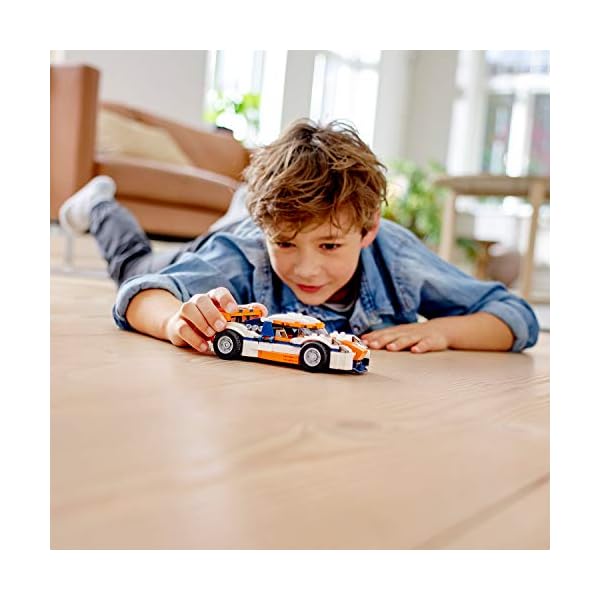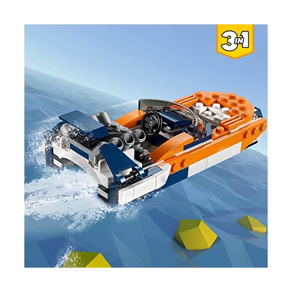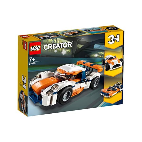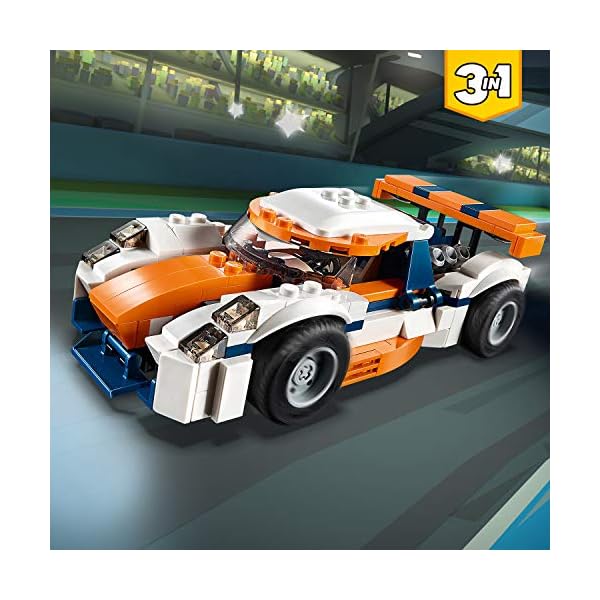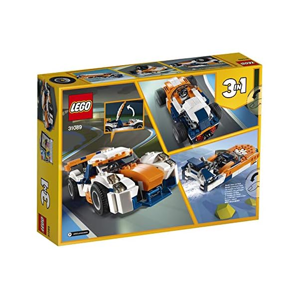 - Divertiti con 3 possibilità di costruzione con questo set LEGO® Creator 3 in 1. Costruisci l’Auto da corsa e poi ricostruiscila in un’auto sportiva classica open-top per tanta azione ad alta velocità dietro al volante o in un potente motoscafo LEGO.