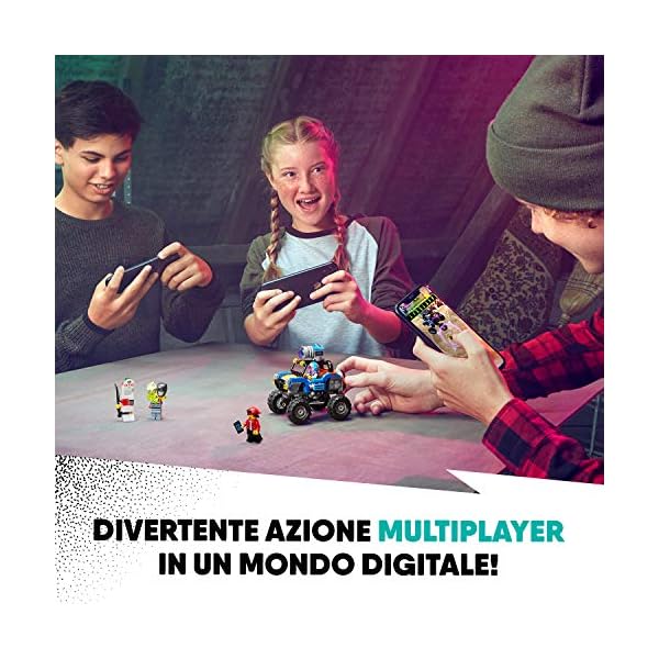 Quando viene visualizzato attraverso uno smartphone o un tablet dotato dell’app AR LEGO Hidden Side, il buggy da spiaggia di Jack rivela un mondo digitale infestato. I bambini potranno esplorare, risolvere misteri, andare a caccia di fantasmi e combattere contro il loro boss Trucker Dale, da soli oppure online con gli amici. E con 3 minifigure, ci si può divertire anche con il gioco di ruolo.