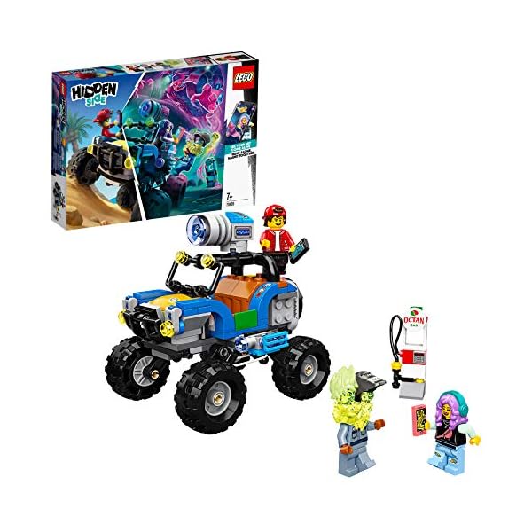 Questo set di gioco LEGO in realtà aumentata include un buggy da spiaggia Hidden Side interattivo a livello digitale, con caratteristiche e funzioni interessanti, e le minifigure