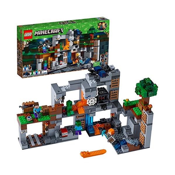 Non perderti il nuovo esclusivo gioco di LEGO Minecraft! Indossa la tua armatura di ferro, prendi la spada e preparati per combattere il ragno delle caverne! Usa il piccone di diamante o attiva la funzione della dinamite per estrarre l’ossidiana e 7 tipi di minerale, quindi avventurati nelle caverne e miniere con le cascate d’acqua e di lava. Combatti contro una schiera di ragni delle caverne, zombie e molto altro ancora!