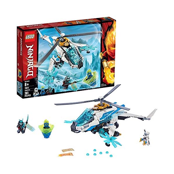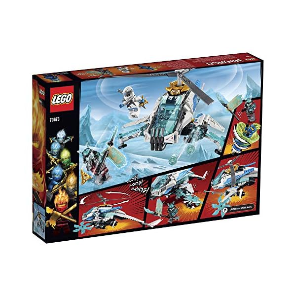 Questo set LEGO NINJAGO include 3 minifigure, novità di giugno 2019: Zane, Jay FS (Forbidden Spinjitzu) e il Generale Vex. Lo ShuriCottero è dotato di cabina di pilotaggio per minifigure, ruote per l’atterraggio con 2 lame shuriken girevoli, rotore funzionante e shooter a 6 colpi a fuoco rapido su ogni ala.