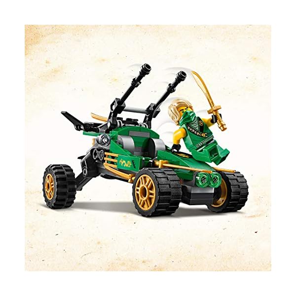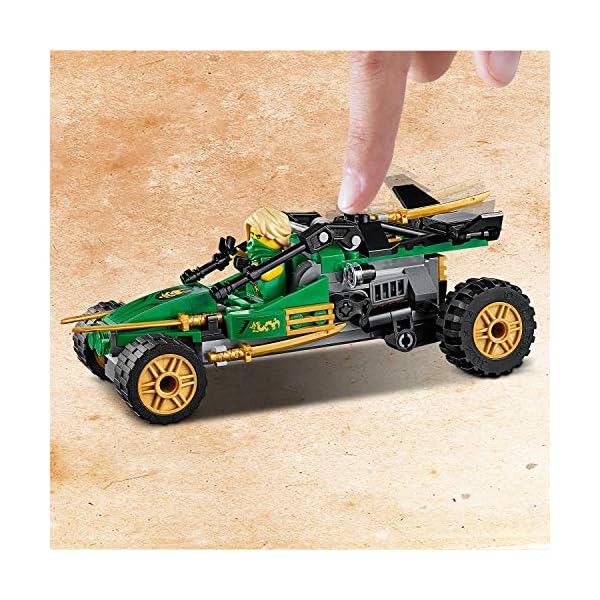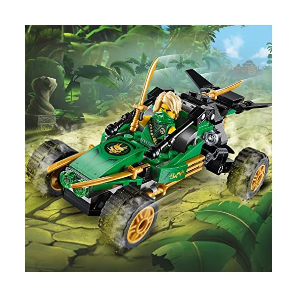 Set di gioco con il buggy Fuoristrada della giungla e il personaggio ninja Lloyd; i bambini che amano i modelli ninja potranno divertirsi per ore giocando sia da soli che insieme agli amici