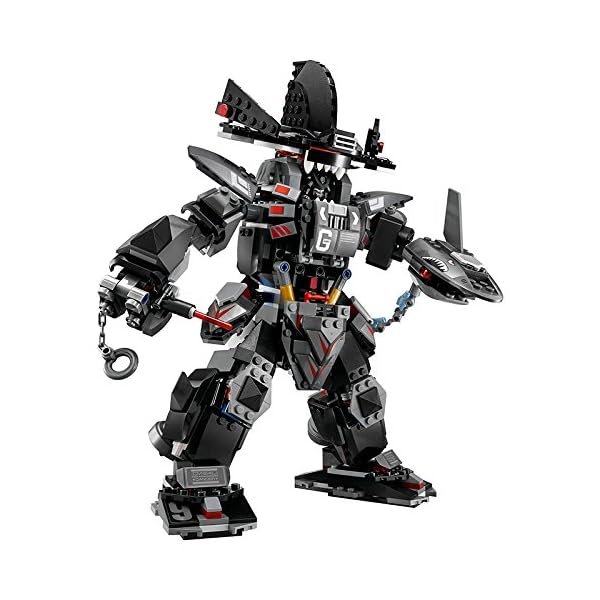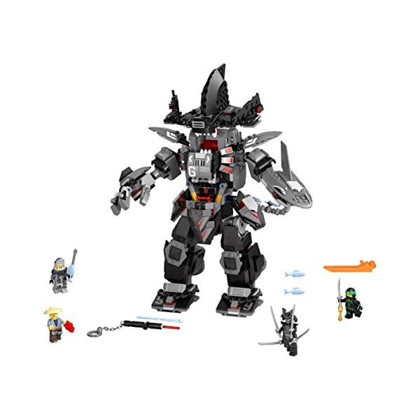 Garma mecha uomo dispone di un pozzetto minifigure apribile, testa posabile, braccia e gambe, blaster di squalo caricato a molla, cintura munizioni con elementi munizioni a forma di squalo e un serbatoio di pesce blu traslucido con elementi mini-squalo