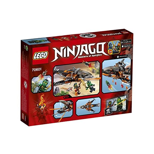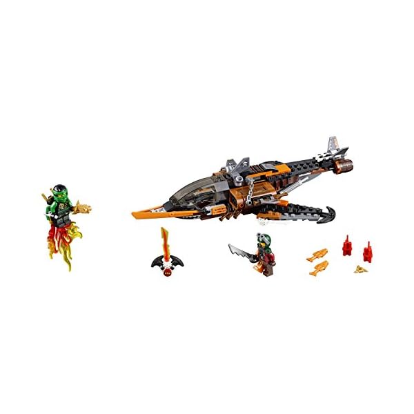 Invia il drone a esplorare questo jet dotato di pericolose lame, mitragliatrici e tanti dettagli da pirata. Ma fai attenzione. Lo Squalo volante potrebbe sganciare candelotti di dinamite o un pesce marcio in qualsiasi momento. Poi converti il drone in un jet-pack per Lloyd e lancia l’eroe Ninja in battaglia. Abbatti lo Squalo volante e lotta per liberare Kai intrappolato dalla lama Djinn.
