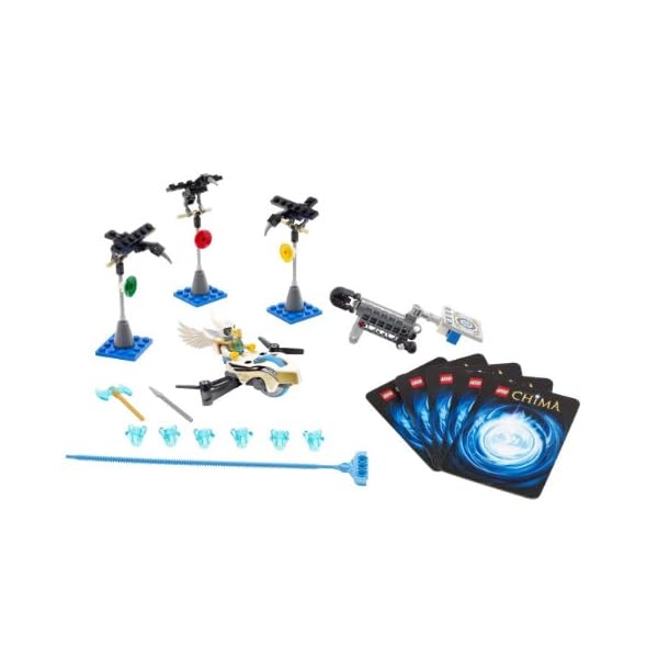 Avventurati nel territorio delle Aquile di Chima per affinare le qualità di precisione e tempismo di Equila con il tiro al bersaglio. Posiziona Equila sullo Speedorz dell’Aquila, tira il lanciatore e scatena la potenza animale. Fai pressione sulla piastra collegata al lanciatore per sparare la freccia aquila e aggiudicarti il CHI colpendo i corvi bersaglio. Monta ilcomponente per colpire più bersagli contemporaneamente. Il set include una minifigure, 2 armi, uno Speedorz, un lanciatore, 1componente, rampa, 6 CHI e 5 carte gioco. Metti alla prova il tuo tempismo e la tua precisione con questo gioco per 1 o più giocatori.