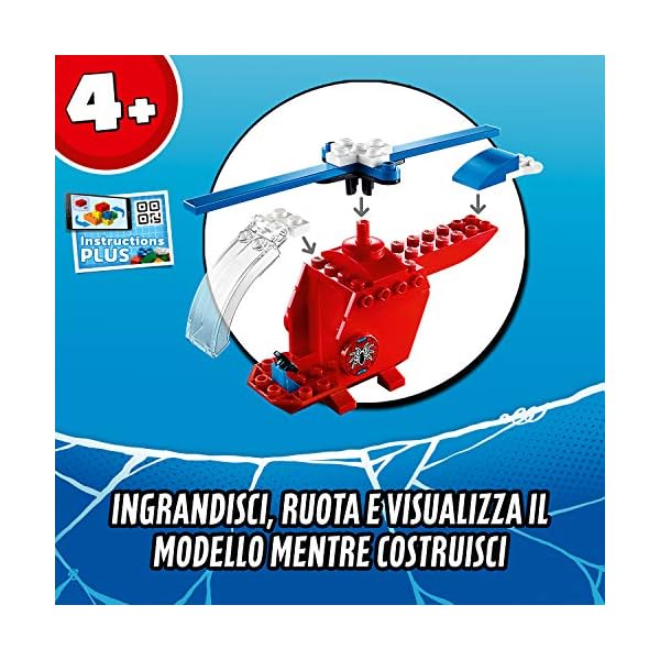 Anche i bambini piccoli possono costruire questo set di gioco di Spider-Man in modo indipendente, grazie alle Instructions PLUS; questa guida interattivaè disponibile con l’app LEGO Life gratuita