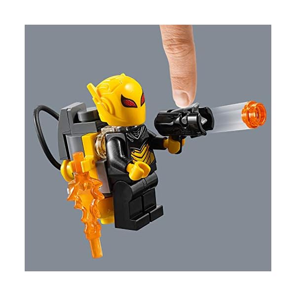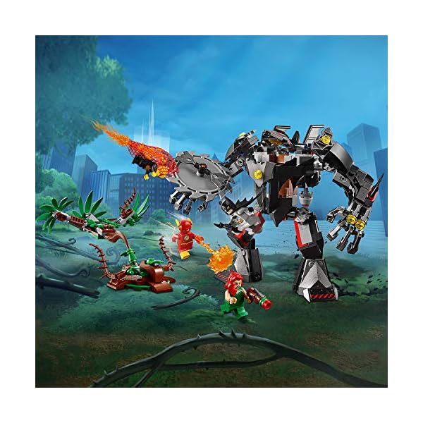 Il Mech di Poison Ivy è dotato di cabina per minifigure, shooter, bracci “ramo” snodabili, mano-foglia velenosa artigliante per afferrare una minifigure e funzione collassabile