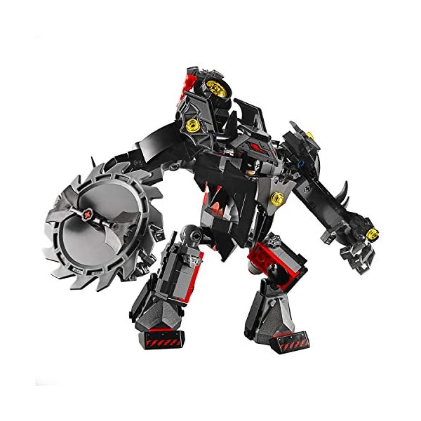 Il Mech di Batman è dotato di cabina per minifigure apribile, braccia e gambe snodabili, mani artiglianti per afferrare una minifigure, doppio shooter, sega rotante e spara-reti retrattile