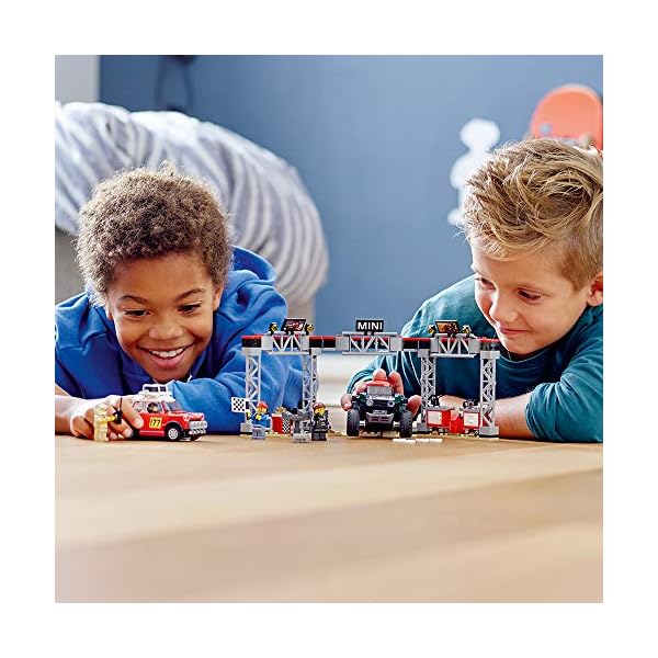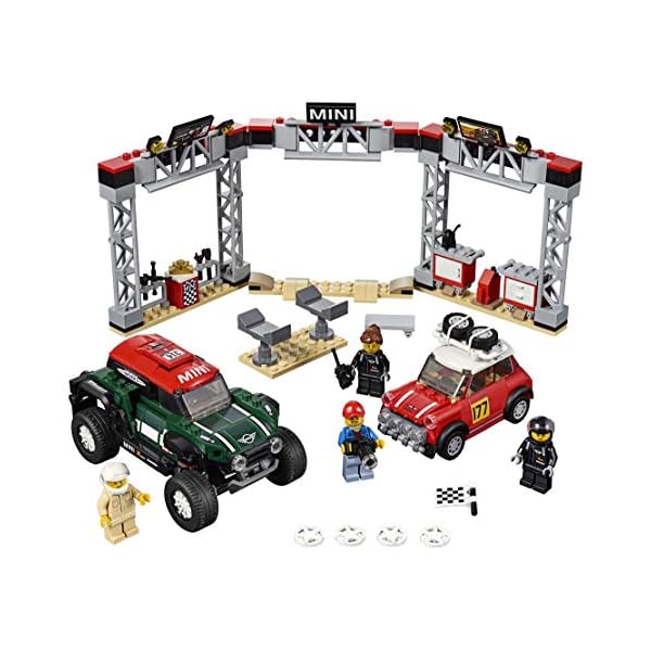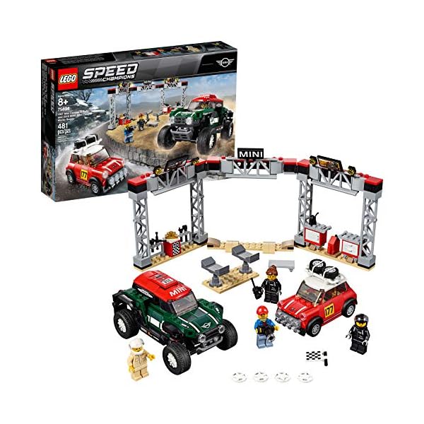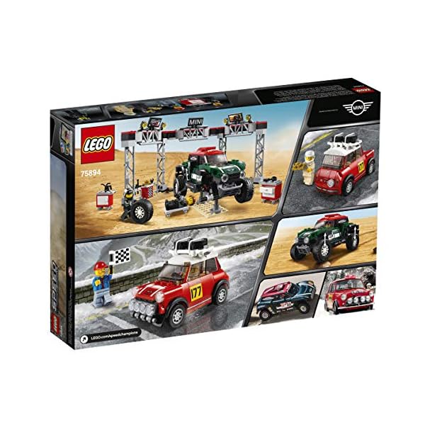 Gear up for classic vs. modern rally action with the 1967 Mini Cooper S Rally car featuring a roof rack with 2 spare tires, the 2018 MINI John Cooper Works Buggy, plus a detailed pit stop station with tool racks, car jack stand and a mechanic’s creeper! Includes 4 LEGO minifigures: a Mini Cooper S Rally driver, MINI John Cooper Works Buggy rally driver, race marshal and a mechanic 1967 Mini Cooper S Rally car toy measures over 2” (6cm) high, 3” (9cm) long and 1” (4cm) wide; 2018 MINI John Cooper Works dune buggy measures over 2” (7cm) high, 5” (13cm) long and 2” (7cm) wide; Pit stop station measures over 5” (13cm) high, 11” (30cm) wide and 4” (12cm) deep 481 pieces – Model car toy construction set for boys and girls aged 8+ and for fans and big kids of all ages This LEGO Speed Champions 1967 Mini Cooper S Rally and 2018 MINI John Cooper Works Buggy 75894 toy cars for kids can be built together with all other original LEGO building toys and LEGO bricks for creative play
