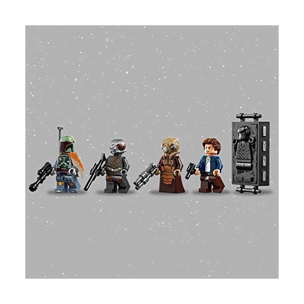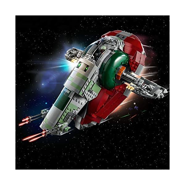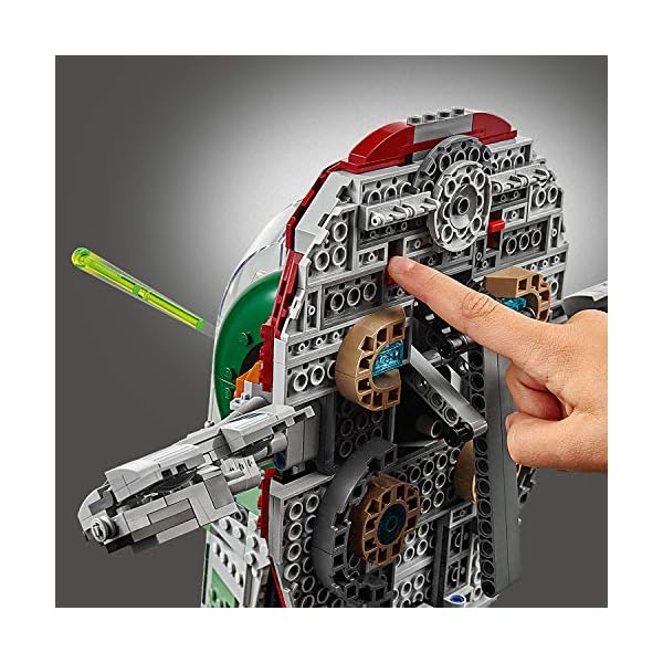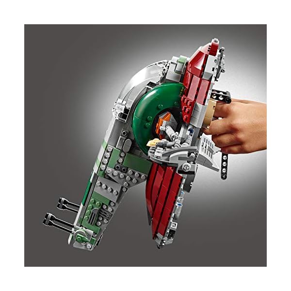 Il set della Slave i LEGO Star Wars contiene una cabina di pilotaggio staccabile con spazio per una minifigure al suo interno, sedile autolivellante e ali laterali, una maniglia per il trasporto, grilletti separati per i 2 shooter a molla, cannoni rotanti e un portello posteriore chiudibile per stivare Han Solo nella carbonite